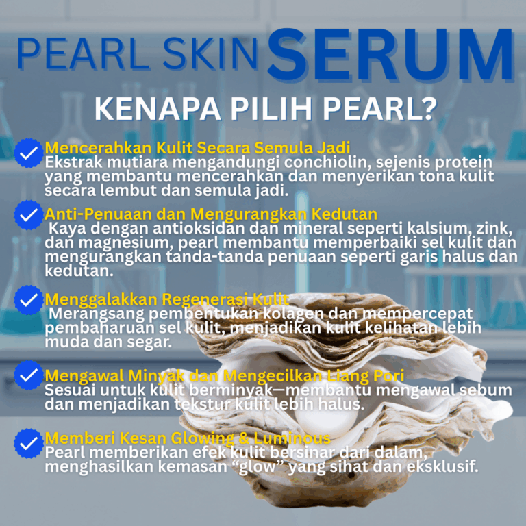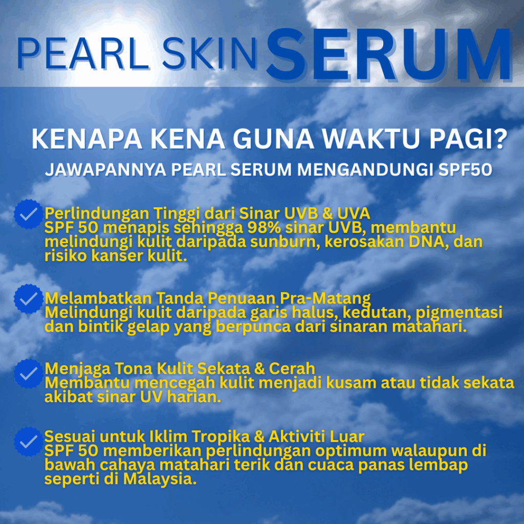 Dengan PEARL SKIN SERUM untuk mendapatkan kulit wajah yang cantik, gebu dan bersih bukan lagi mustahil !!
