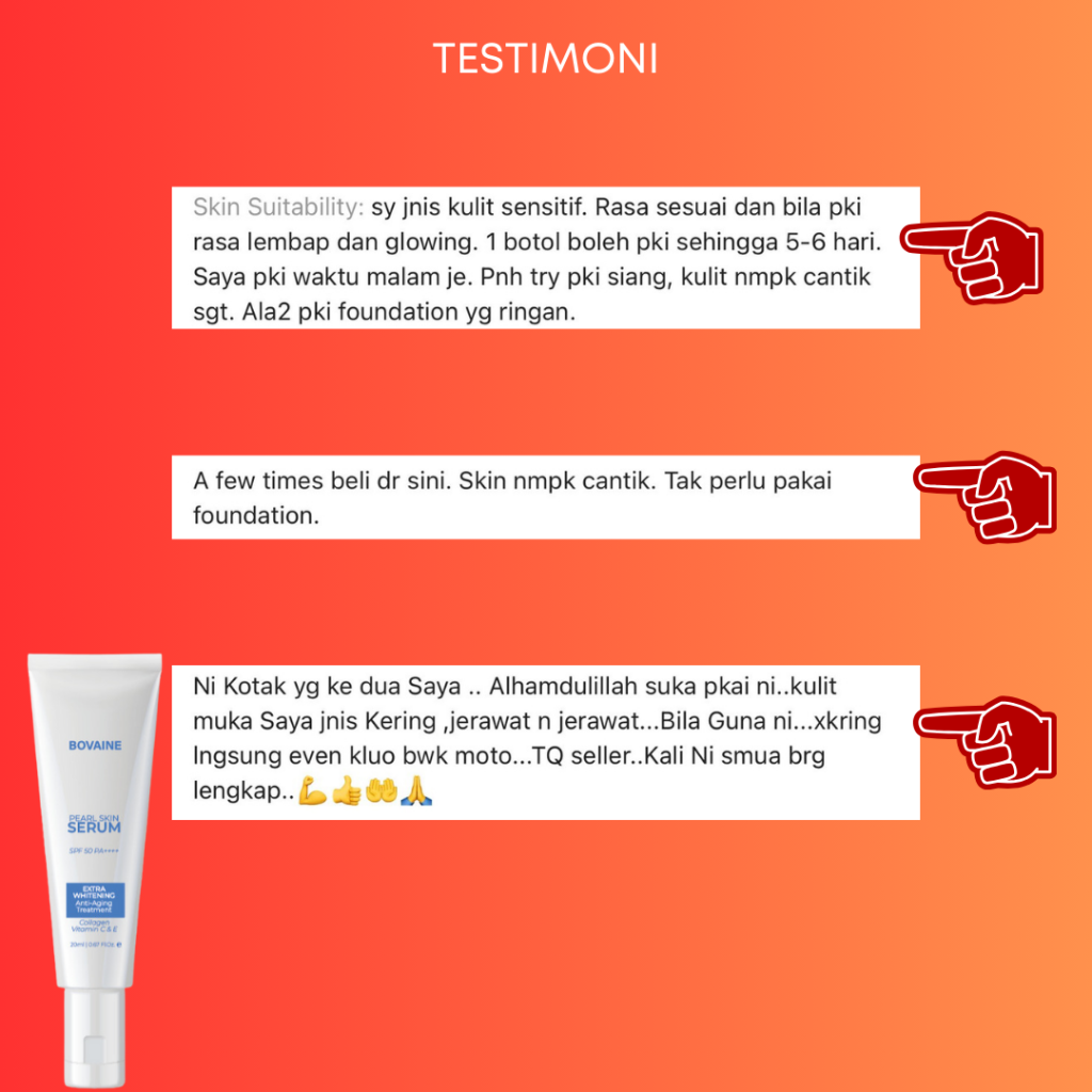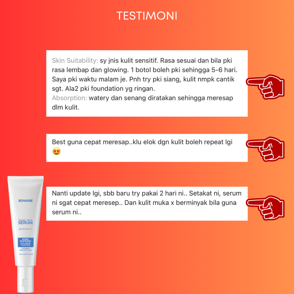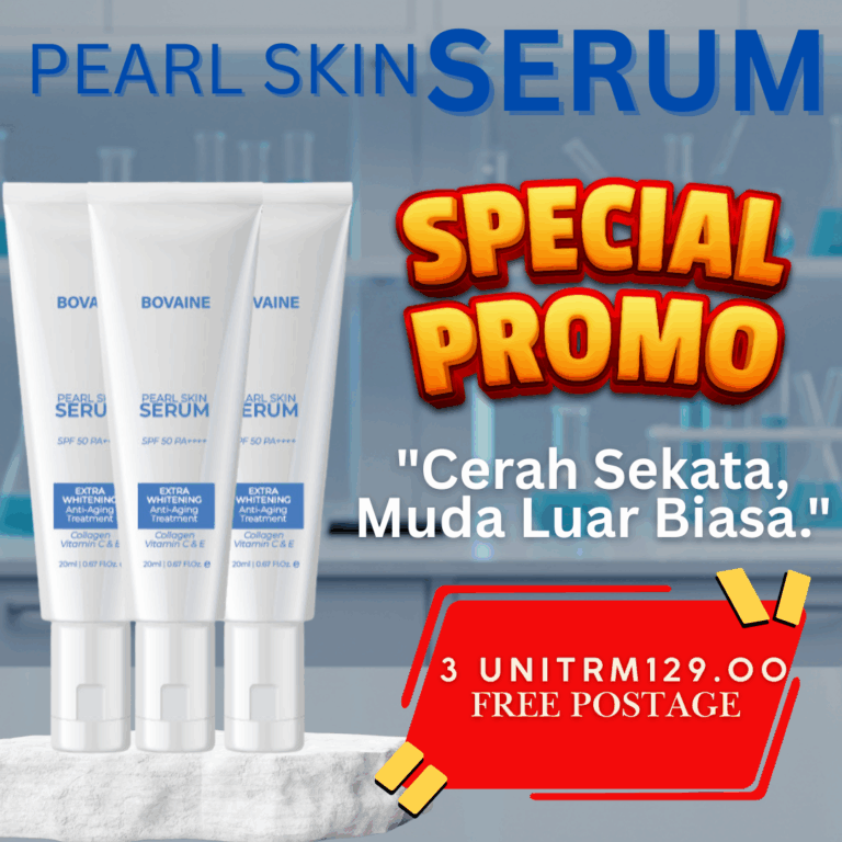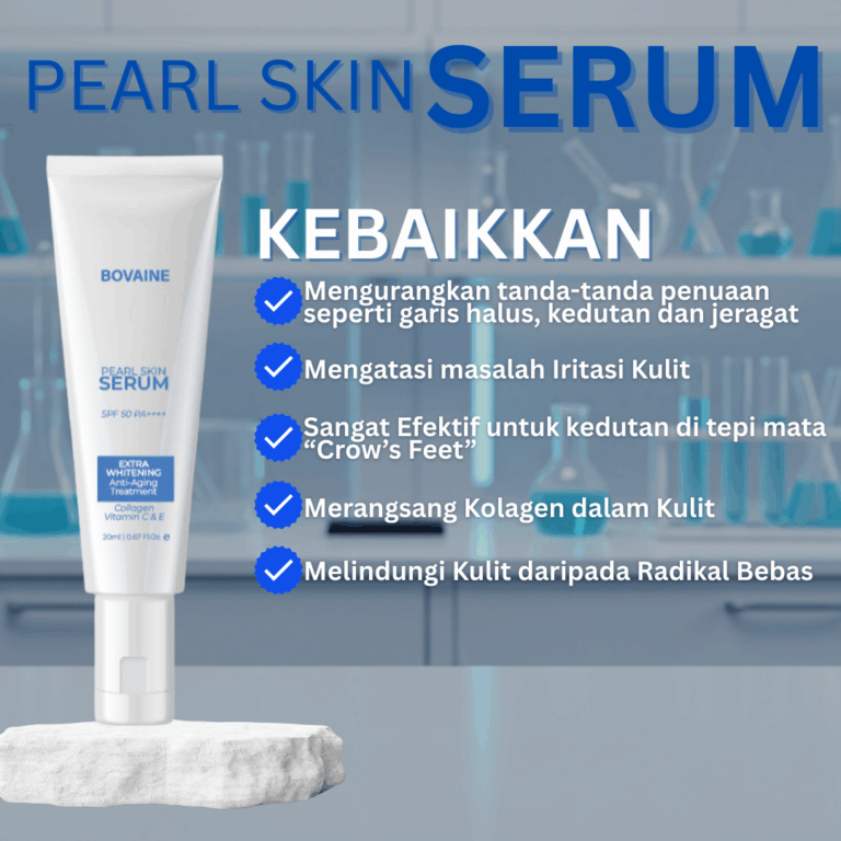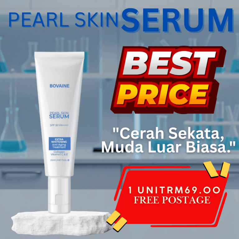 BOVAINE Pearl Skin Serum Adalah Serum untuk perbaiki Kulit Yang Bertindak Dari Dalam Untuk Merawat Seperti Kedutan, kulit muka gelap, tone warna kulit tidak sekata mahupun bintik bintik hitam Pada Kulit Wajah.